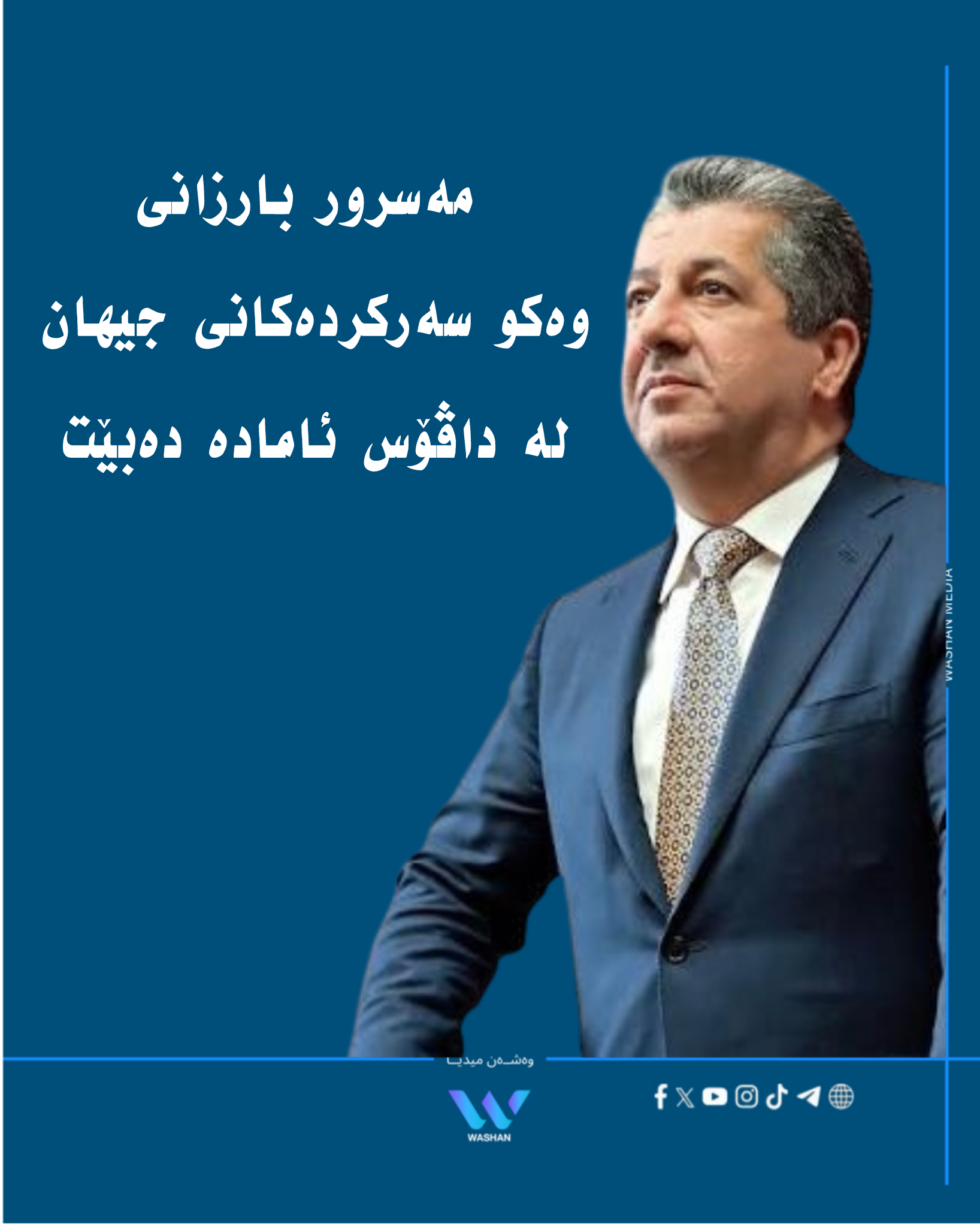 ئەمڕۆ دووشەممە، 19ـی کانوونی دووەمی 2026، مەسرور بارزانی سەرۆکی حکومەتی هەرێمی کوردستان لەگەڵ سەرۆک و سەرکردەکانی جیهان بەشدار دەبێت لە 56ـەمین کۆڕبەندی ئابووریی جیهان (داڤۆس)